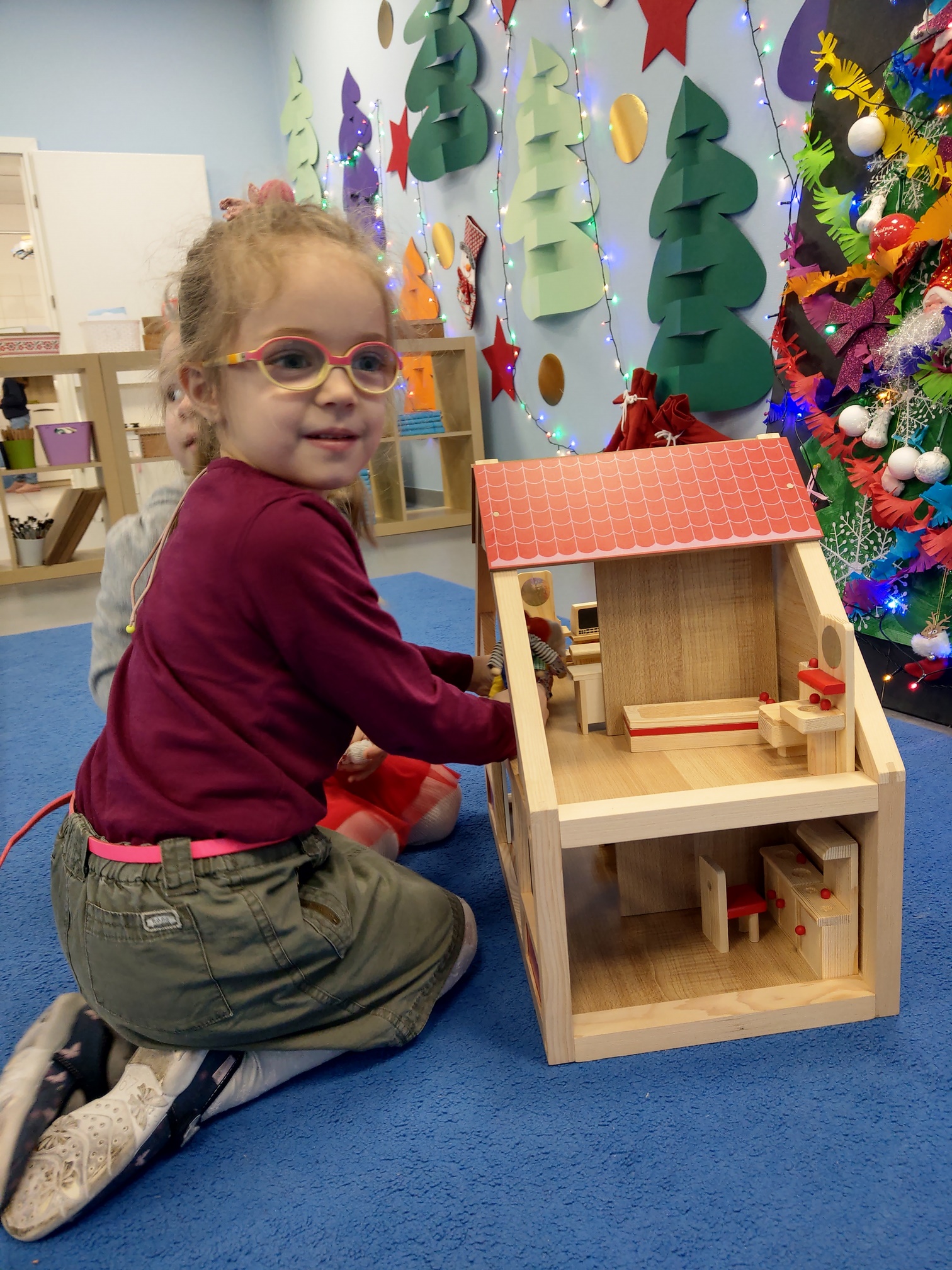 Drewniany domek z czerwonym dachem zachęca nas do zabawy